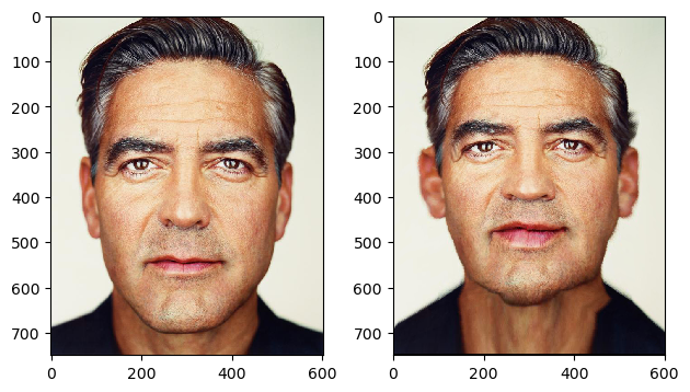 We can now produce a smooth warp between our two images using a very similar process as we did for creating the "mid-way" face. Producing a morph sequence is the same thing as producing intermediate images of the two faces morphed to each other according to some factor of how much of each we want to moprh at that point. We can use the same inverse transform function used in Part 2 with goal points being some linearly interpolated point between the two sets of keypoints. Here is the result of the morph sequence between my face and George Clooney's face: