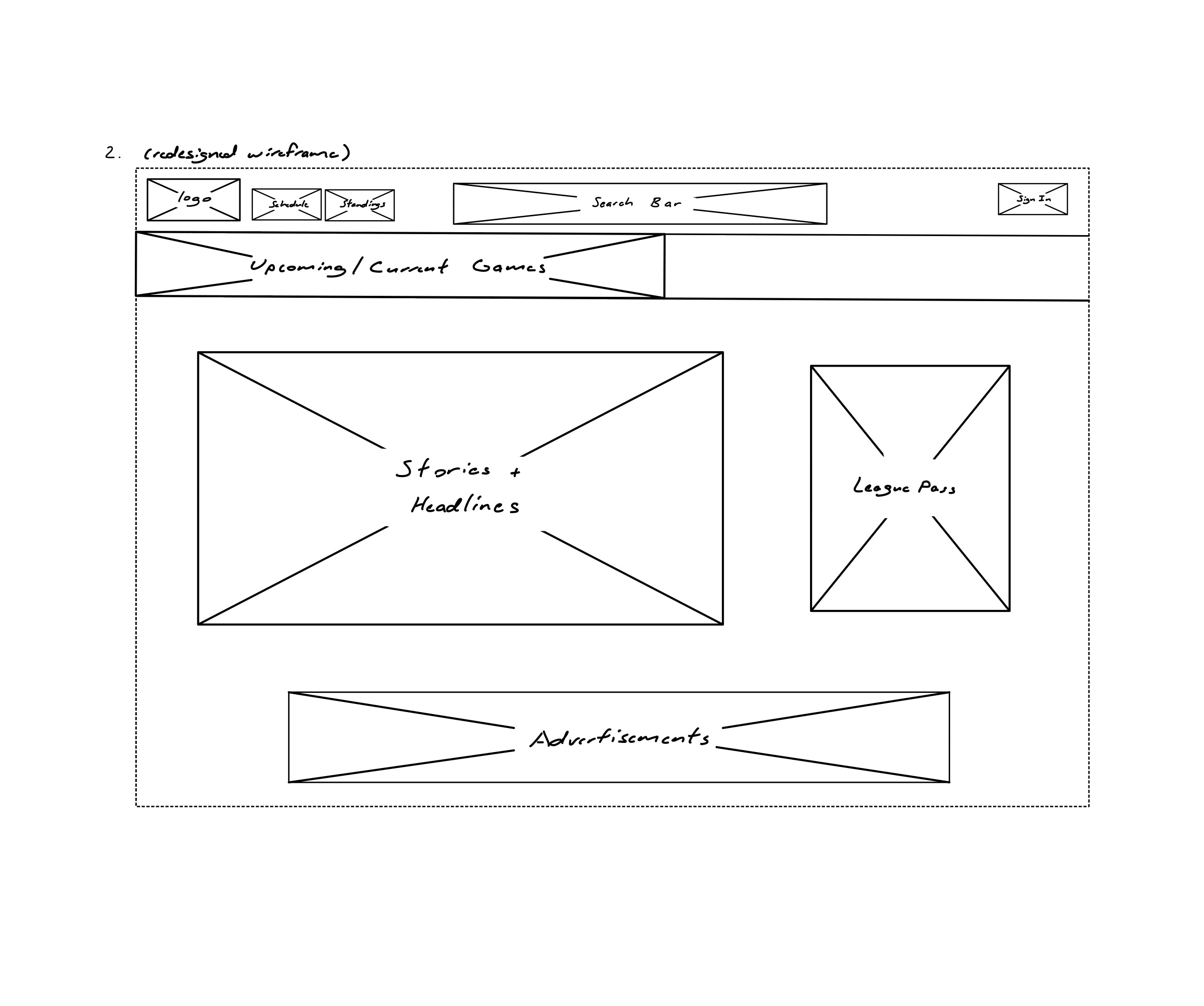One problem my redesign addressed was that I felt that the top navigation bar was a little bit cluttered, as I sometimes have issues finding things on the website when I use it. I also tried moving the advertisements section lower so that the News section and League Pass are higher in the visual hierarchy.
